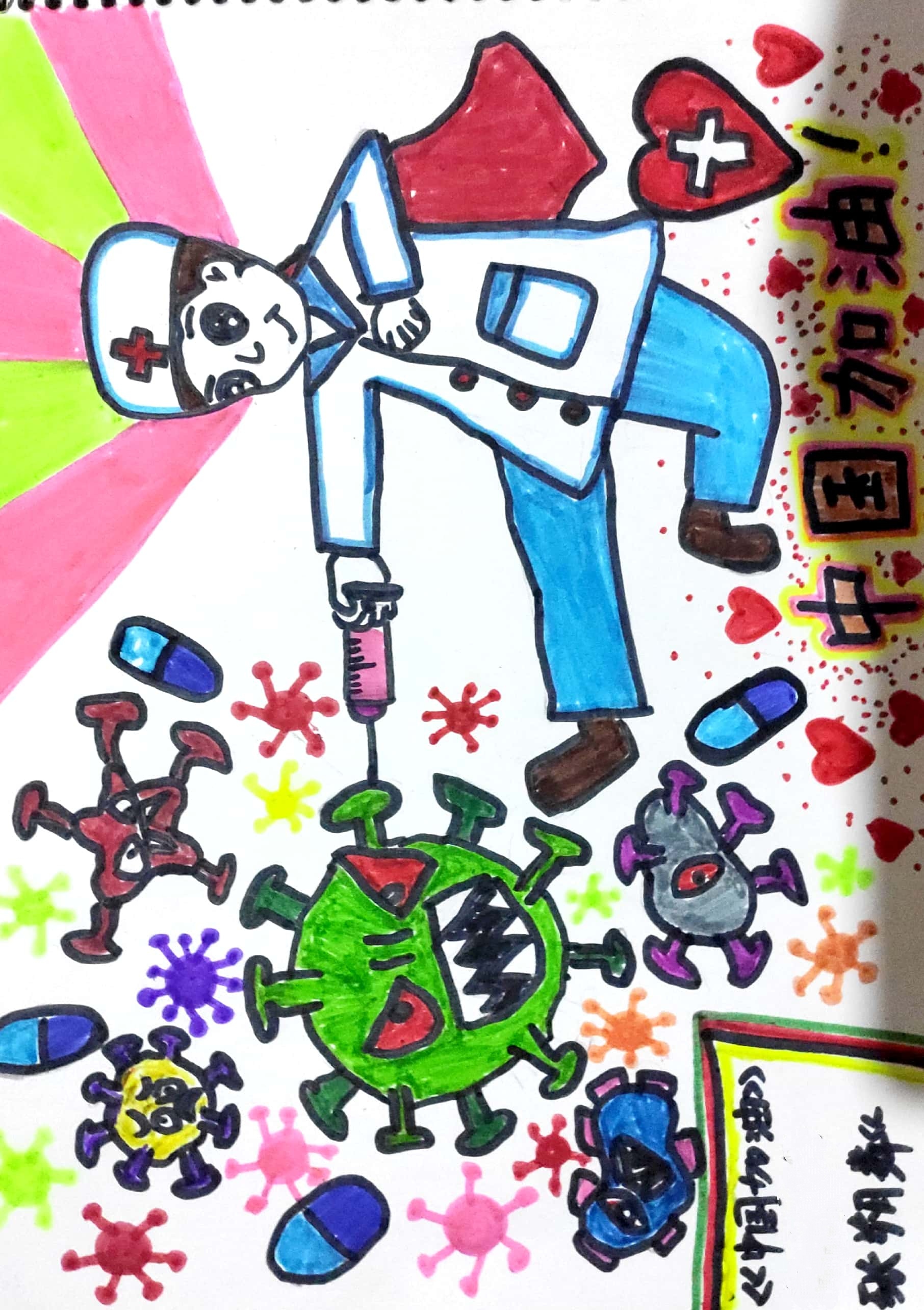 创作理念:致敬奋战在一线的医生,护士,病毒一定能被打败