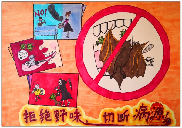 创作理念:听说人们吃了野生动物蝙蝠感染了病毒,我要告诉大家保护野生动物和大自然,病毒就不会侵害我们了!