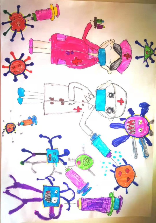 创作理念:2020年的春天,一场新冠肺炎严重影响了我们的生活。亲爱的白衣天使叔叔阿姨们,不顾自己的危险和辛苦,努力的抗击病毒,保护我们的健康和安全。感谢他们,因为他们的努力,我们的安全得到了保障,谢谢这些辛苦的白衣天使们。白衣天使们加油!武汉加油!中国加油!