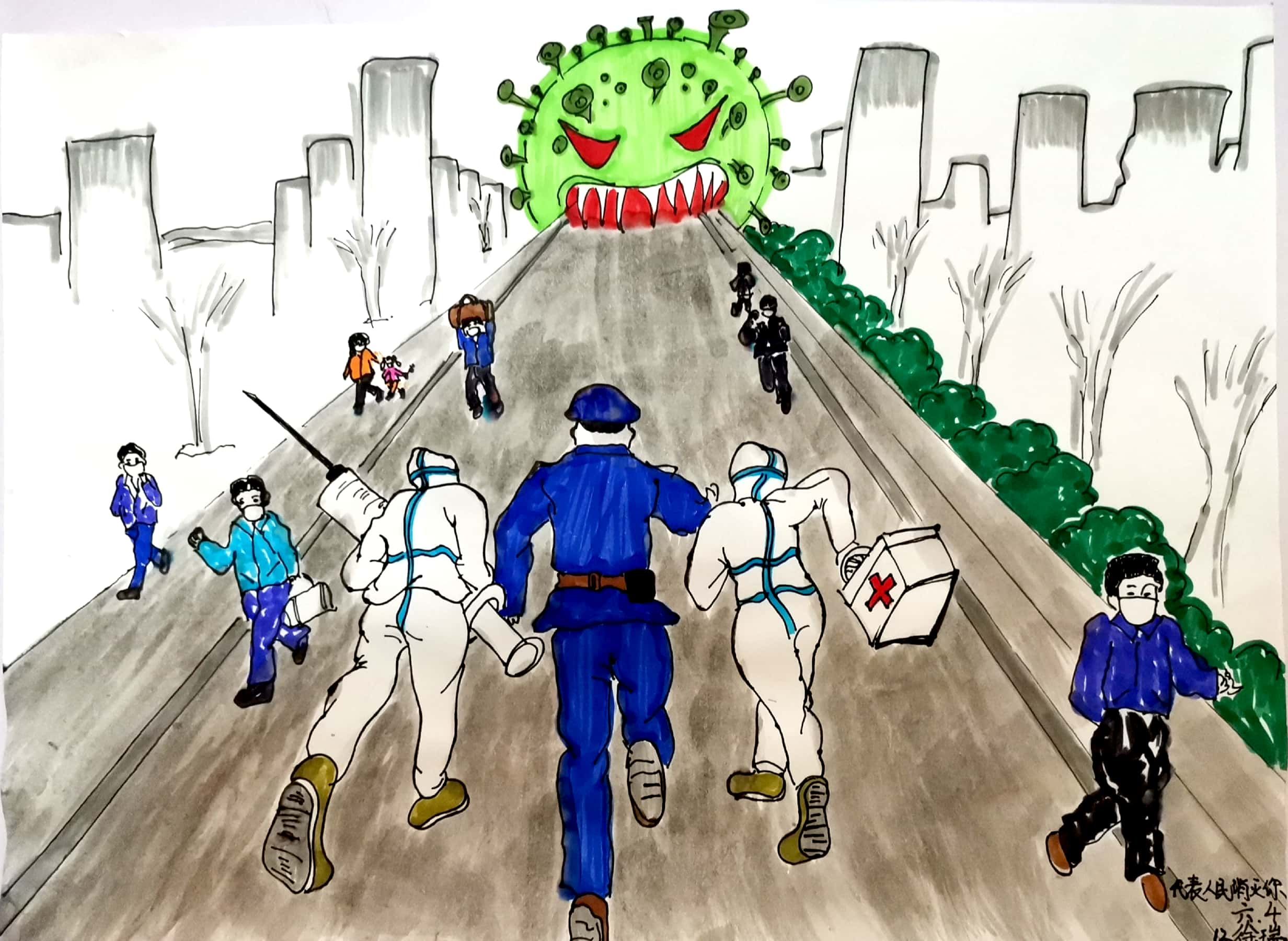 创作理念:新年伊始 ,我们的祖国病了!可怕的冠状病毒迅速侵占了武汉和全国各地,中华儿女没有被可怕的病毒吓倒!医护人员、武警官兵、党员群众大家从四面八方赶来 ,为了一个共同的目标,那就是无论病毒多可怕,代表人民消灭你!