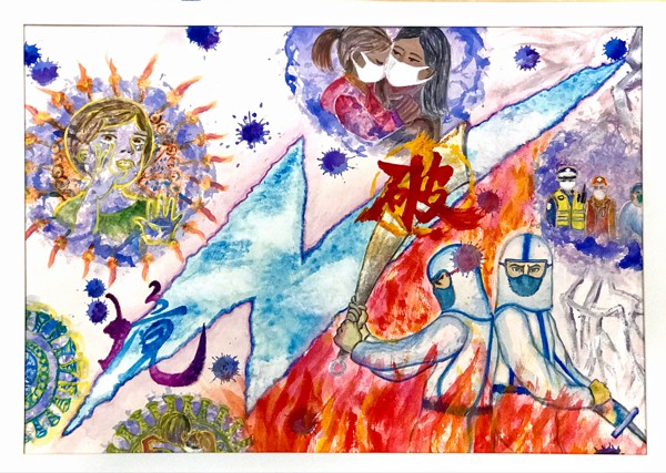 创作理念:创作的过程是艰难的,在此之前我们也是刚从国外度假回来,对疫情了解很少。回家后妈妈从最基本的知识开始让我慢慢知道了咱们祖国正在经历的磨难,让我深刻感受到了疫情的可怕,对冲锋在第一线的医护叔叔阿姨们既崇拜又担心;对在疫情严重地区的人们,尤其是小朋友们特别心疼,如果换做是我,我真是得伤心难过的天天哭泣。 每想到这些,我就幻想着我有一把能切开次元空间的魔刀,可以消灭这个空间所有病菌、可以带大家到一个没有污染、没有杀戮、没有疫情的新的环境,让我们全人类重新开始。