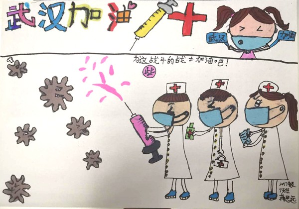 创作理念:在这场抗击疫情的战斗中,人人都是战斗者,为辛勤战斗的战士们加油助威